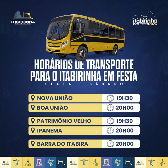 Tudo pronto, tudo preparado para uma das maiores Festas do Leste Mineiro, o 10º Itabirinha em Festa 2023 começa nesta sexta-feira (28), o prefeito Dr.Lucas Donadia e seu Vice Dudu estão esperando toda populaçao da região e todos os municipes de Itabirinha. Veja o transporte…