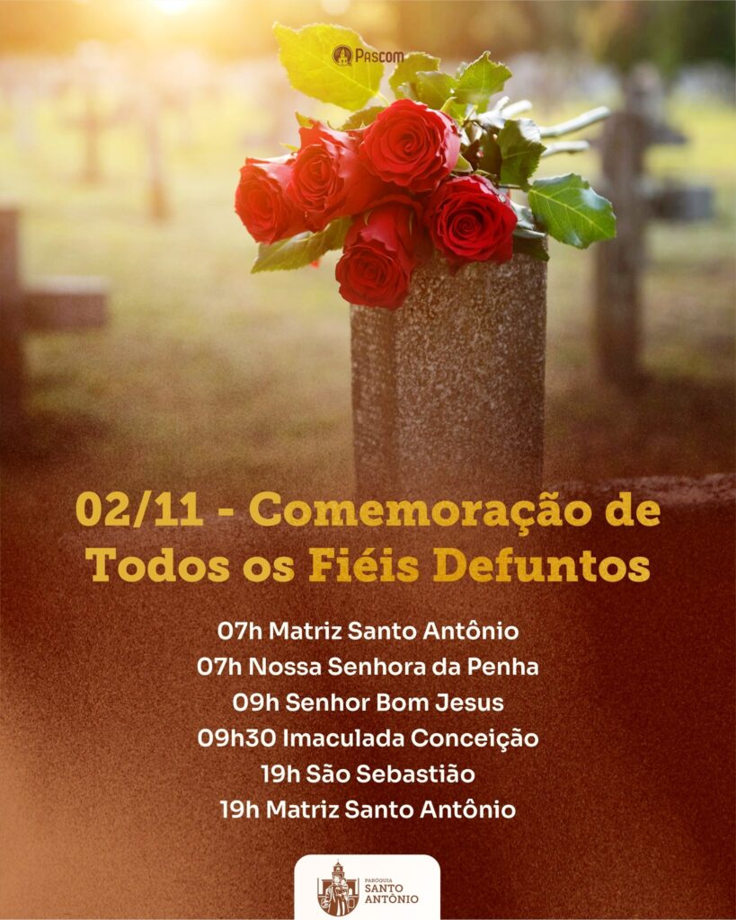 No dia em que lembramos e rezamos por aqueles que já partiram, convidamos todos a participarem das celebrações em nossa paróquia e comunidades: