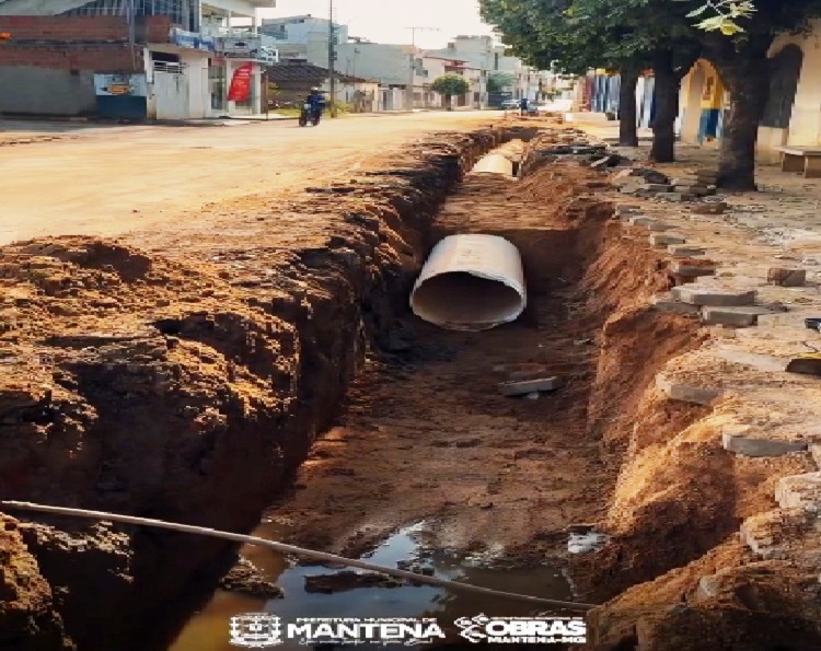 Prefeitura de Mantena substitui tubulação antiga por rede de grande porte na Vila Nova, corrigindo falhas de engenharia do passado na tentativa de acabar com alagamentos crônicos.