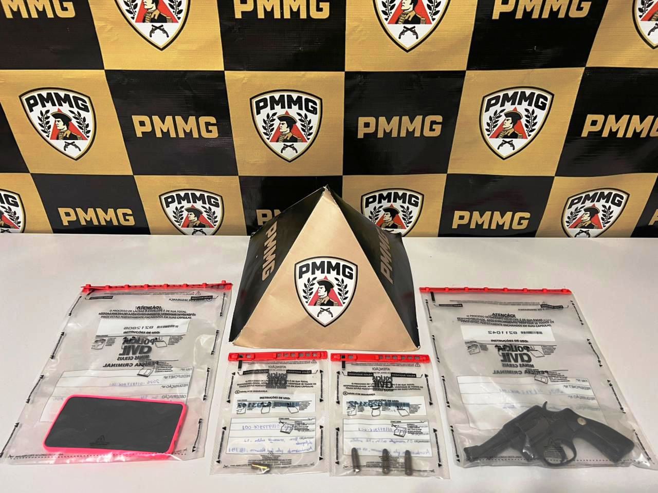 Tratava-se de um revólver calibre .32, carregado com três munições intactas e uma já deflagrada. O autor confessou ser o dono do armamento e admitiu ter efetuado um disparo em via pública pouco antes da chegada da guarnição.