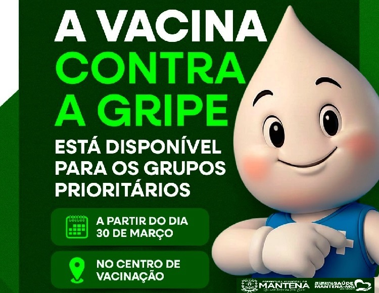 MANTENA – A Prefeitura Municipal de Mantena, por meio da Secretaria Municipal de Saúde, reafirma seu compromisso com o bem-estar e a segurança da população ao anunciar o início da Campanha de Vacinação contra a Influenza (Gripe). A partir do próximo dia 30 de março, o Centro de Vacinação estará de portas abertas para receber os cidadãos pertencentes aos grupos prioritários, consolidando o trabalho de prevenção que é marca registrada da atual gestão.