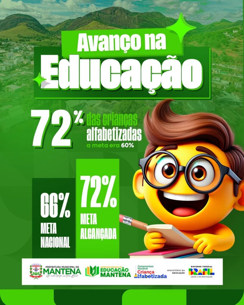 Os números oficiais revelam que a cidade não apenas cumpriu o dever de casa, mas superou todas as expectativas. Enquanto a meta estabelecida era de 60%, Mantena atingiu a marca de 72% de alunos alfabetizados na idade certa. O desempenho coloca o município em um patamar superior à média nacional, que atualmente é de 66%.