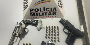 Polícia Militar prende homem por porte ilegal com duas armas e bucha de maconha em Mantena