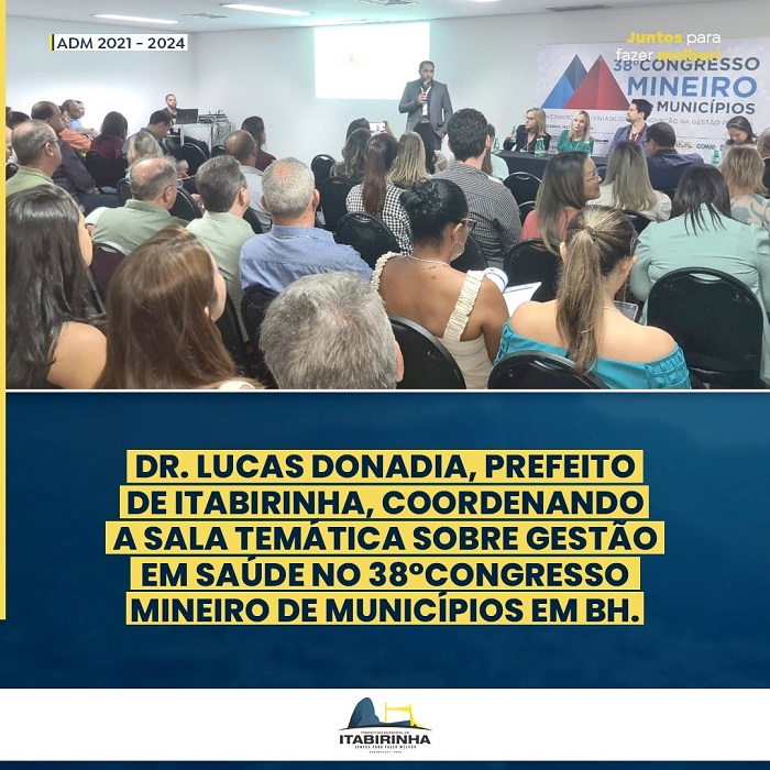 Os reflexos do trabalho de excelência que vem sendo realizado na área da saúde na administração do Prefeito Dr. Lucas Donadia em Itabirinha começam a dar bons frutos e serem evidenciados pelo Estado de Minas Gerais como o Convite para Coordenação da Sala Temática sobre Gestão em Saúde no 38º Congresso Mineiro de Municípios em Belo Horizonte.