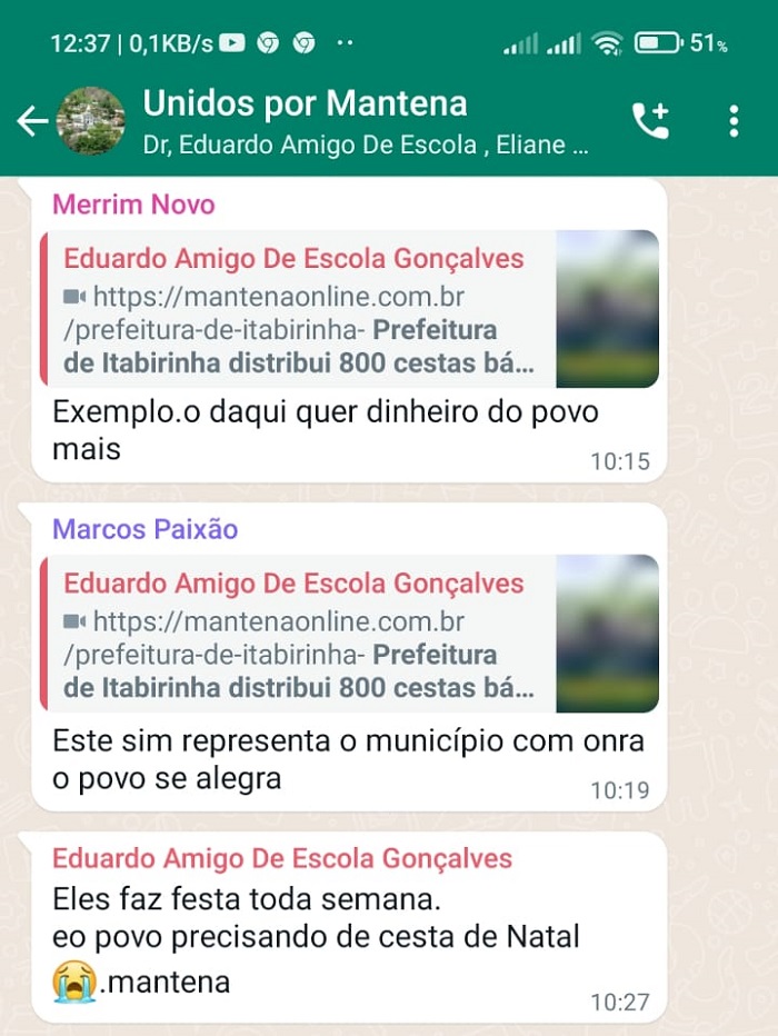 Uma dona de casa que tem os seus pedidos de exames sem serem atendidos e passa por dificuldades financeiras questiona “Na área da assistência social, por exemplo, não há notícias sobre distribuição de cestas básicas aos mais carentes como ocorreu no mês de outubro de 2020. Por qual motivo?”