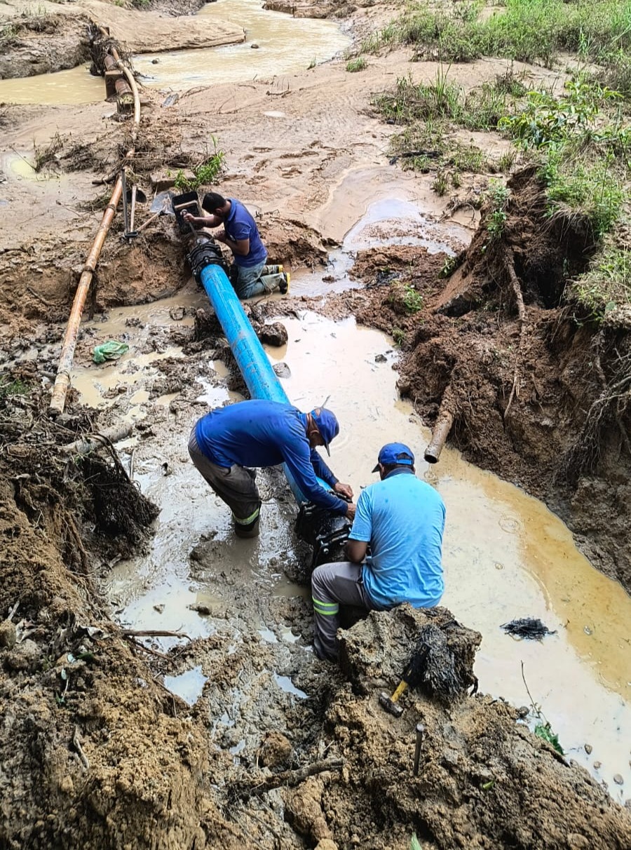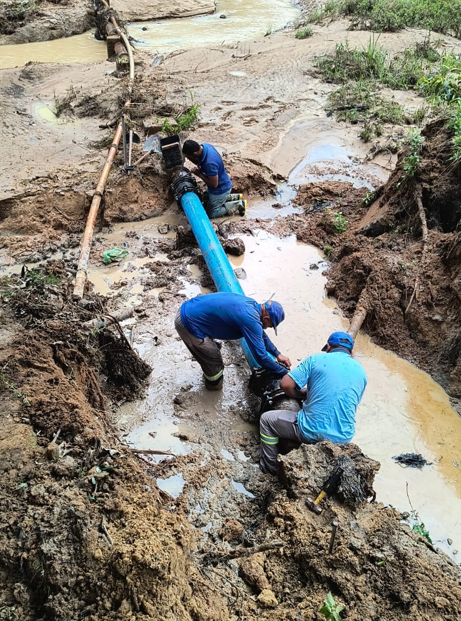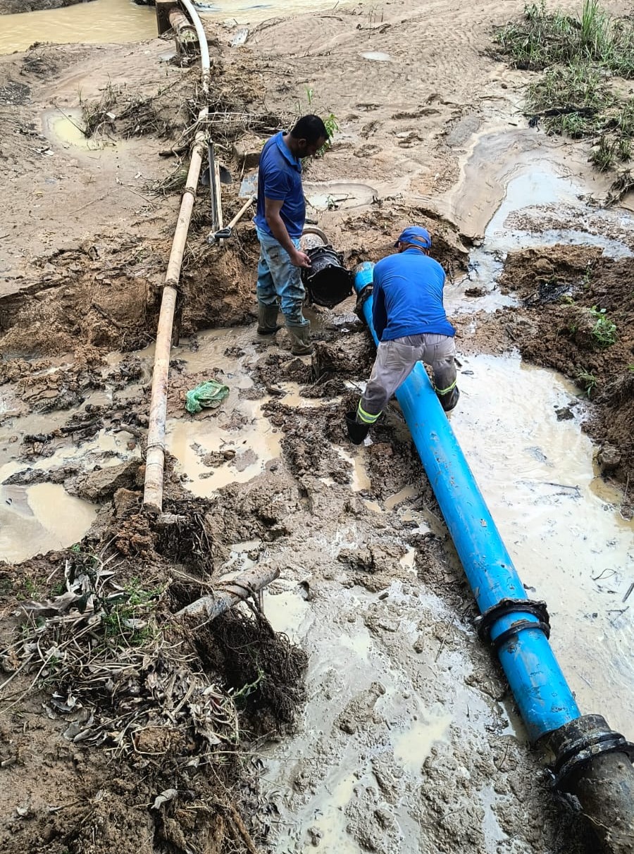 SAAE Mantena finaliza reparo emergencial na adutora do Turvo e restabelece abastecimento