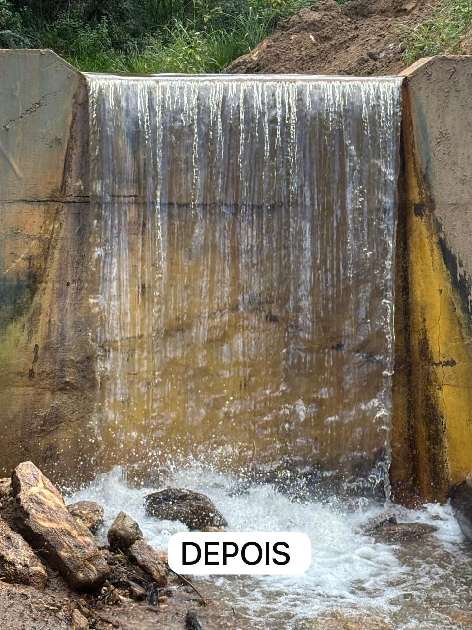 As imagens da Barragem do Córrego Frio após a intervenção demonstram a amplitude da limpeza realizada. Onde antes havia acúmulo de material que prejudicava a profundidade da captação, agora nota-se uma área livre para o pleno aproveitamento do recurso hídrico, assegurando mais tranquilidade e segurança para todas as famílias mantenenses.