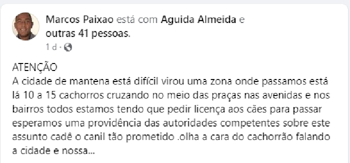 Eu quero saber é agora que foi diagnosticado um caso de raiva humana em Mantena cadê a zoonose do município para acabar com esse monte de cachorro para rua fora espalhado a Deus dará