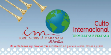 A Igreja Cristã Maranata no centro e nos bairros Nicolini, Santos Prates I e Vila Nova tem a honra de convidar você e seus familiares para participarem do Culto Internacional Trombetas e Festas 2 . Será um evento de alerta para o mundo sobre os acontecimentos atuais que antecedem a volta do Senhor Jesus. Será … Continue lendo Trombetas e Festas 2 : Igreja Maranata convida para Escola Dominical (06) novembro em Mantena – Os verdadeiros significados que acontecem no planeta, sinais, avisos e juízos