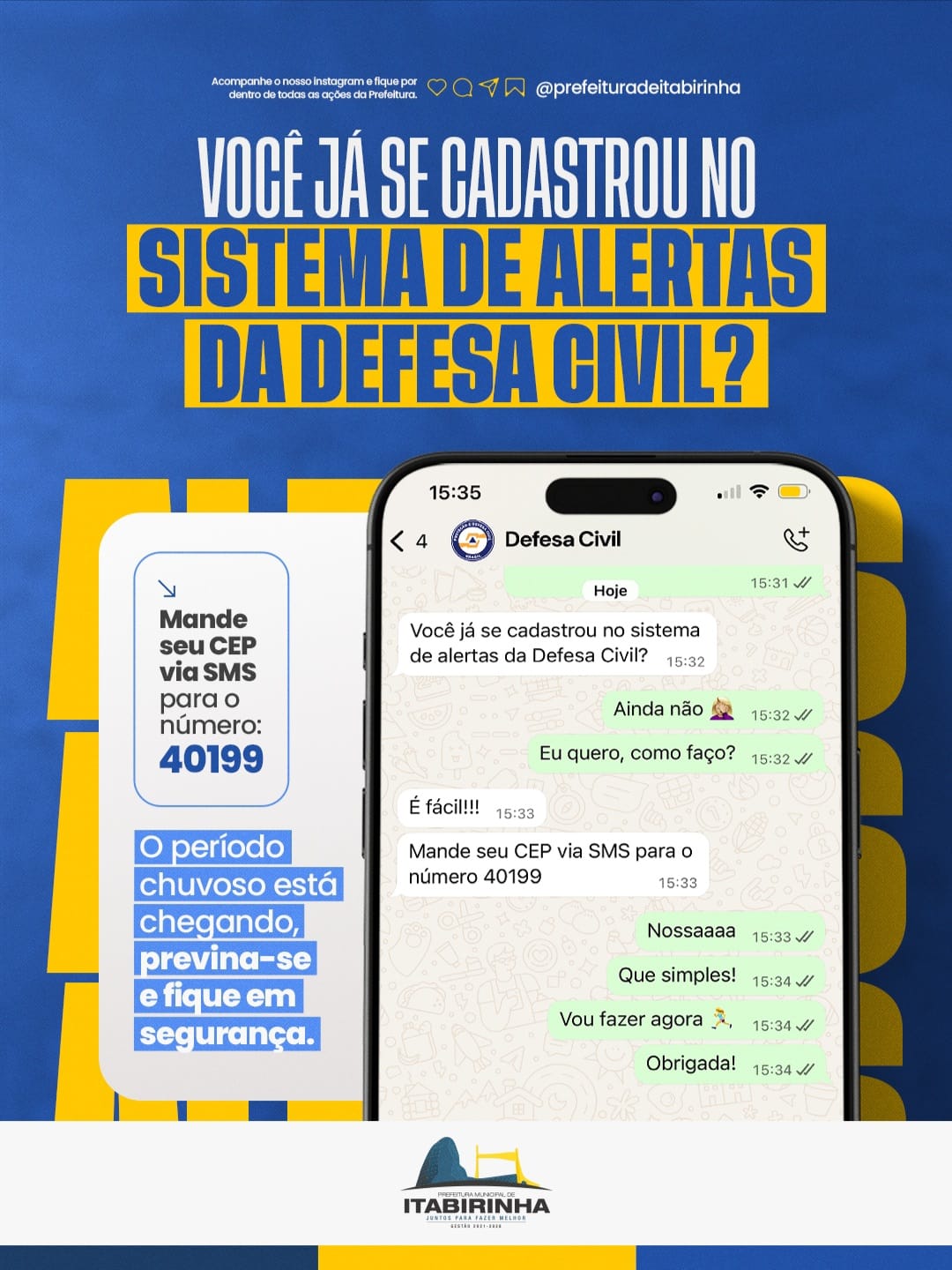 O sistema de alertas da Defesa Civil é um meio tecnológico para avisar a população sobre riscos iminentes de desastres, como alagamentos, deslizamentos e vendavais, enviando mensagens diretamente para celulares compatíveis com tecnologia 4G e 5G. O sistema envia alertas pop-up e, em casos mais graves, emite um som de sirene, com o conteúdo sendo definido pelas Defesas Civis estaduais e municipais.